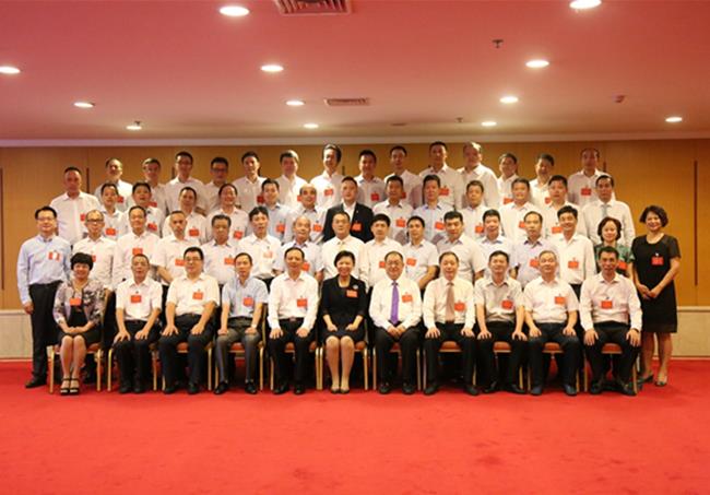 陳慶堂董事長當選福建省工商業聯合會(總商會)副會長,與新一屆領導班子領導在主席臺就坐