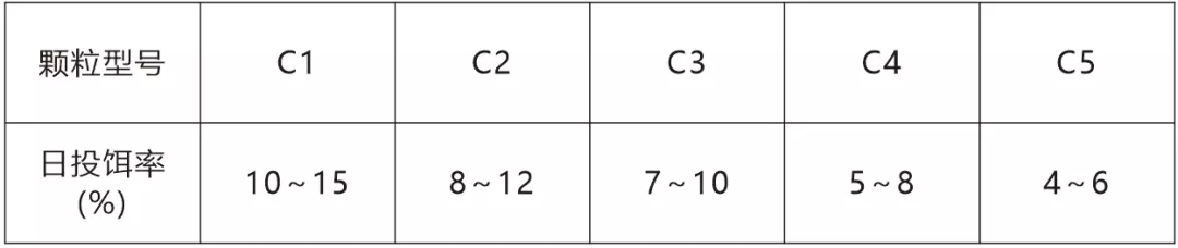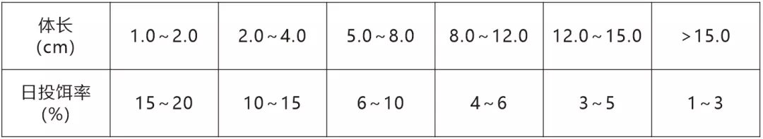 注:具體投喂量根據溫度、水質和攝食情況適時調整。