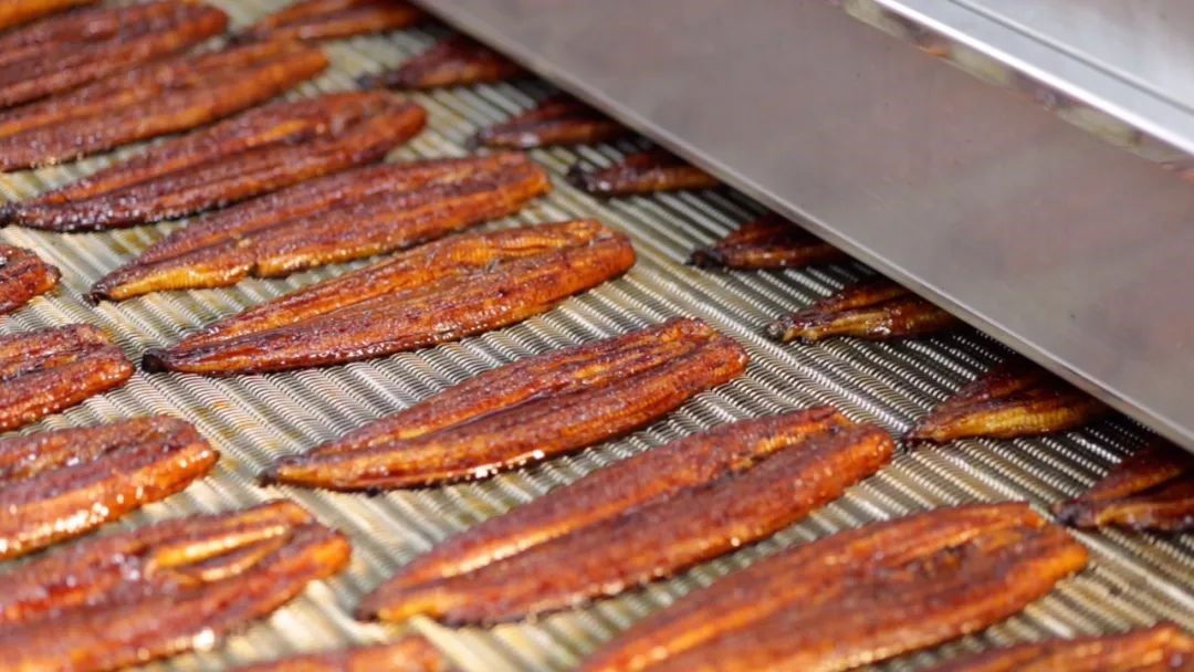 在天馬科技加工廠房,烤鰻生產線高效運轉。“我們將鰻魚制成白燒、蒲燒、串燒、烤肝串等各類產品,年產1500噸,產銷量均全國領先。”天馬食品公司銷售負責人說,近年來,公司鰻魚食品類新品強勢崛起,產線開滿、產銷兩旺,去年一年線上銷量增速超300%。“福州是烤鰻的‘世界工廠’,我們還打算在福州打造觀光式食品超級工廠,新建兩條烤鰻生產線,預計產能6000噸。”