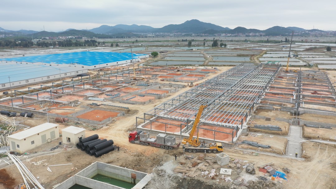 昨日,位于福清市的星馬·福清鑫魚綠色生態(tài)循環(huán)水養(yǎng)殖基地(白鴿山萬畝產(chǎn)業(yè)基地)建設(shè)現(xiàn)場,“扎根三福之地,打造‘中國鰻谷’”的標(biāo)語格外醒目。這里有成片的工廠化循環(huán)養(yǎng)殖車間,還有挖掘機(jī)、運(yùn)料車往來穿梭,項(xiàng)目建設(shè)如火如荼。